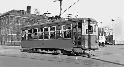 A Birney on Almon Street in front of Bloomfield School in the late 1940s. (Used with permission of authors of The Halifax Street Railway)