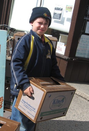 Grainery supporter Oscar Jarsky, 9, helps his mom Lorrie get ready for the 5 p.m. rush of CSA customers.