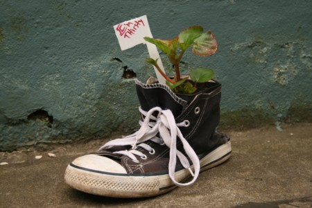 A mystery gardener laced up this flower and left it alongside the pedestrian path that links Princess Place and June Street.