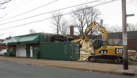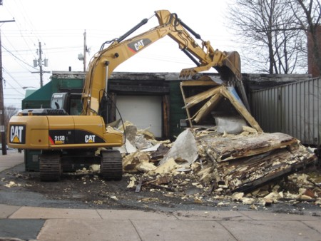 HALIFAX — Demolition crews are tearing into the foam and metal skin of two truck trailers attached to the abandoned Dave’s Bottle Exchange warehouse. It looks like the crews, who started work Wednesday, are leaving the main building up for now.